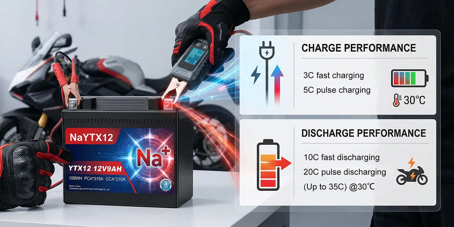 12V Sodium Ion Motorcycle Battery NaCR-YTX12-1209