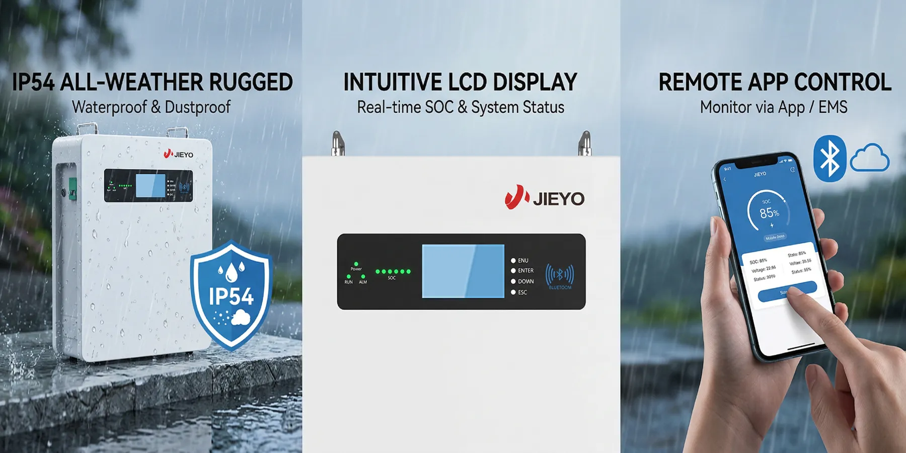 The LCD screen lets you check real-time power levels, voltage, and system status at a glance, while remote monitoring is also available via app or EMS. Its compact design takes up little space without sacrificing style, and it still delivers strong energy storage performance—even in tough environments.
