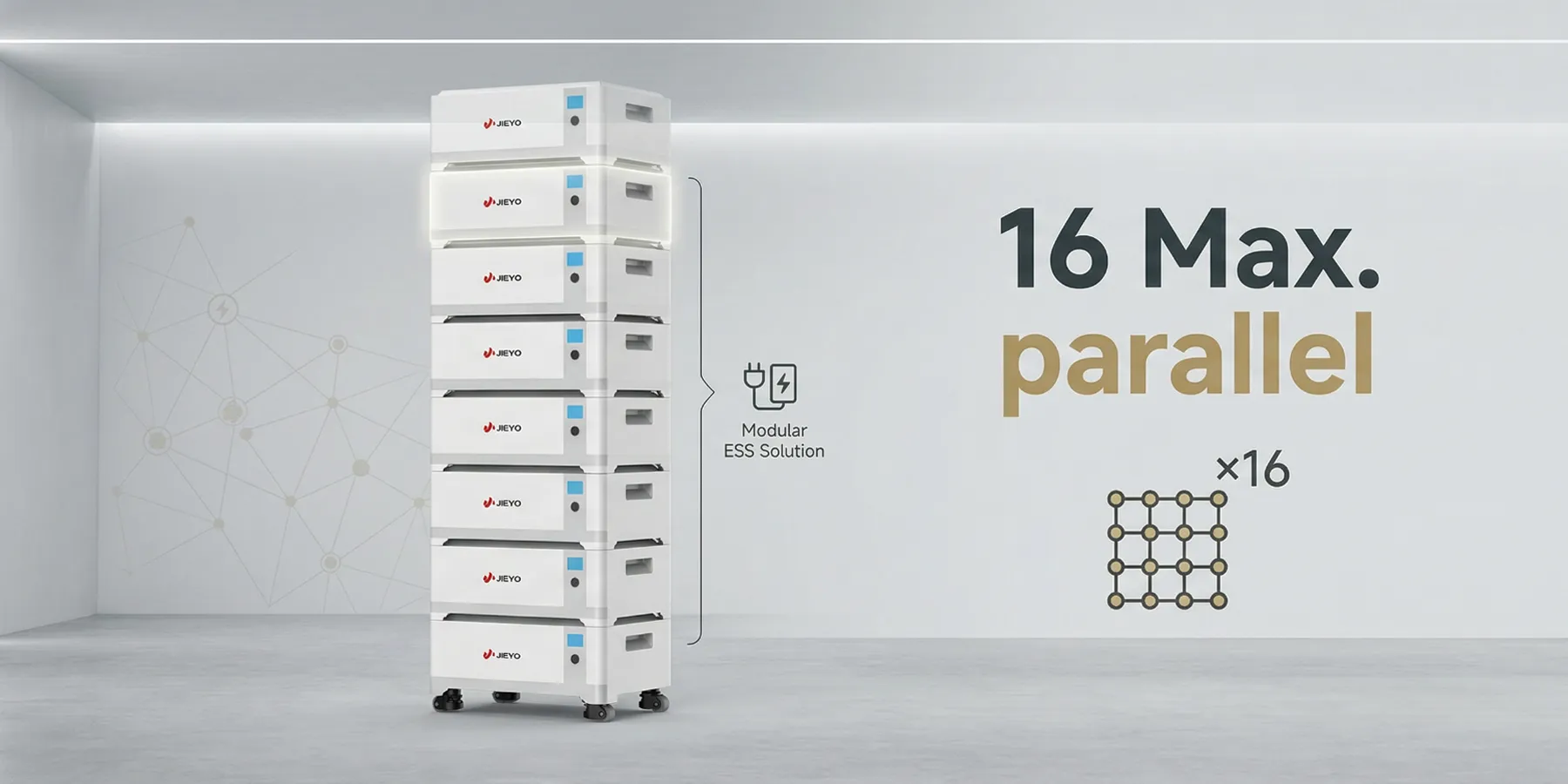 Modular and integrated design ensures easy installation. Featuring a plug-and-play structure, it simplifies setup and reduces complicated wiring between the BMS and battery modules. Supports up to 16 systems in parallel.
